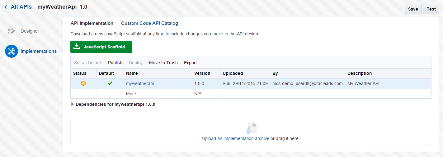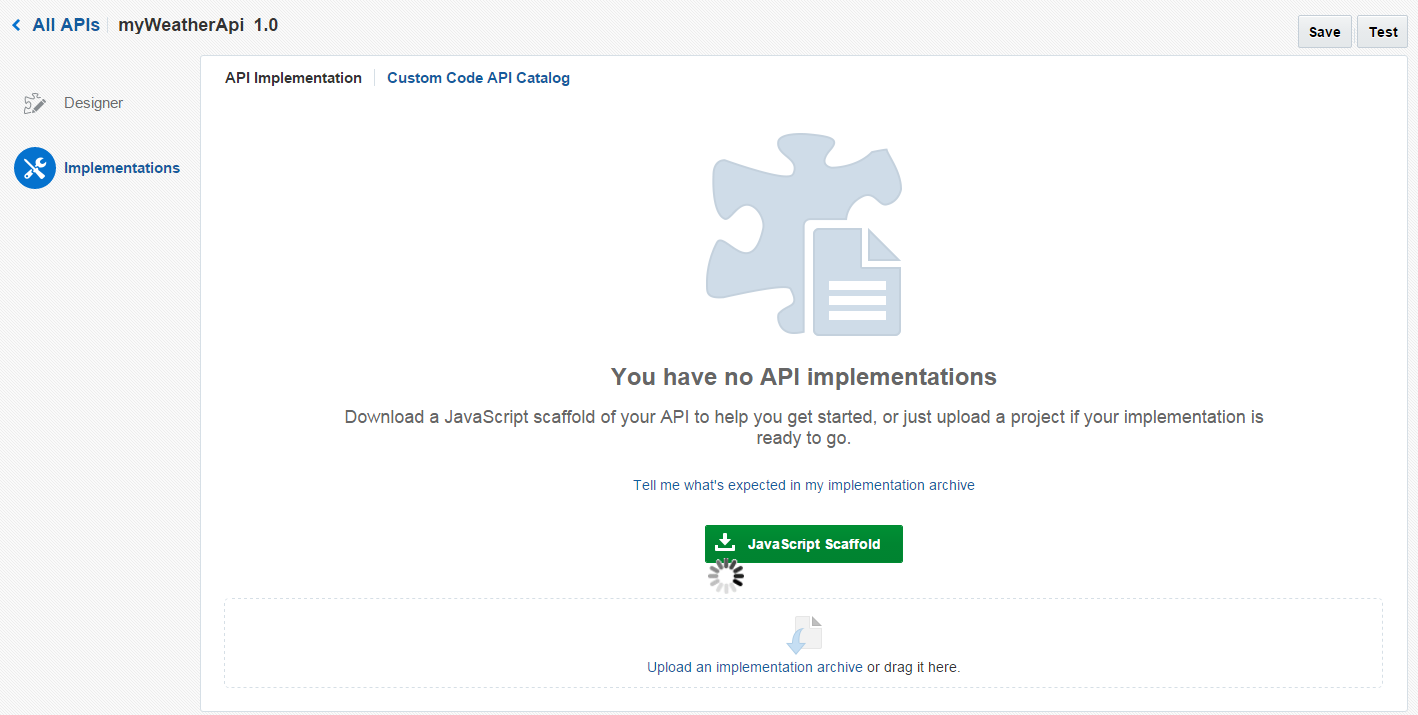 Now that we have designed the API, we need to implement it by downloading the JavaScript Scaffold.