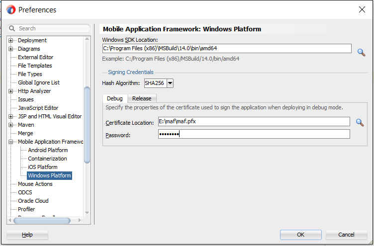 The last step is to configure Windows Platform in JDeveloper preferences.