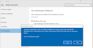 We need to enable Developer Mode in Windows 10 as by default we will not be allowed to run applications if are not installed from Windows Store.