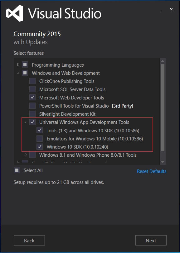Once we have executed the installer, in the wizard we have to select this items and finish the installation.