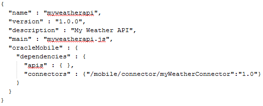 package.json is the file where we can set the dependencies of our API, in this case we have to add our connector’s URI.
